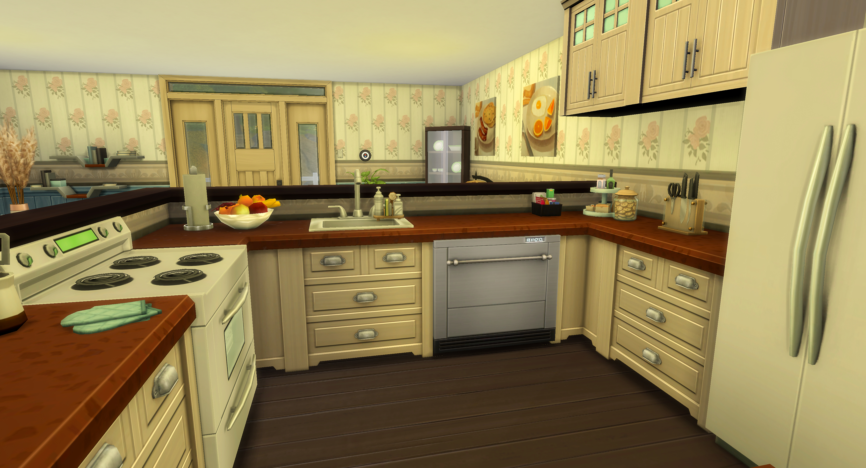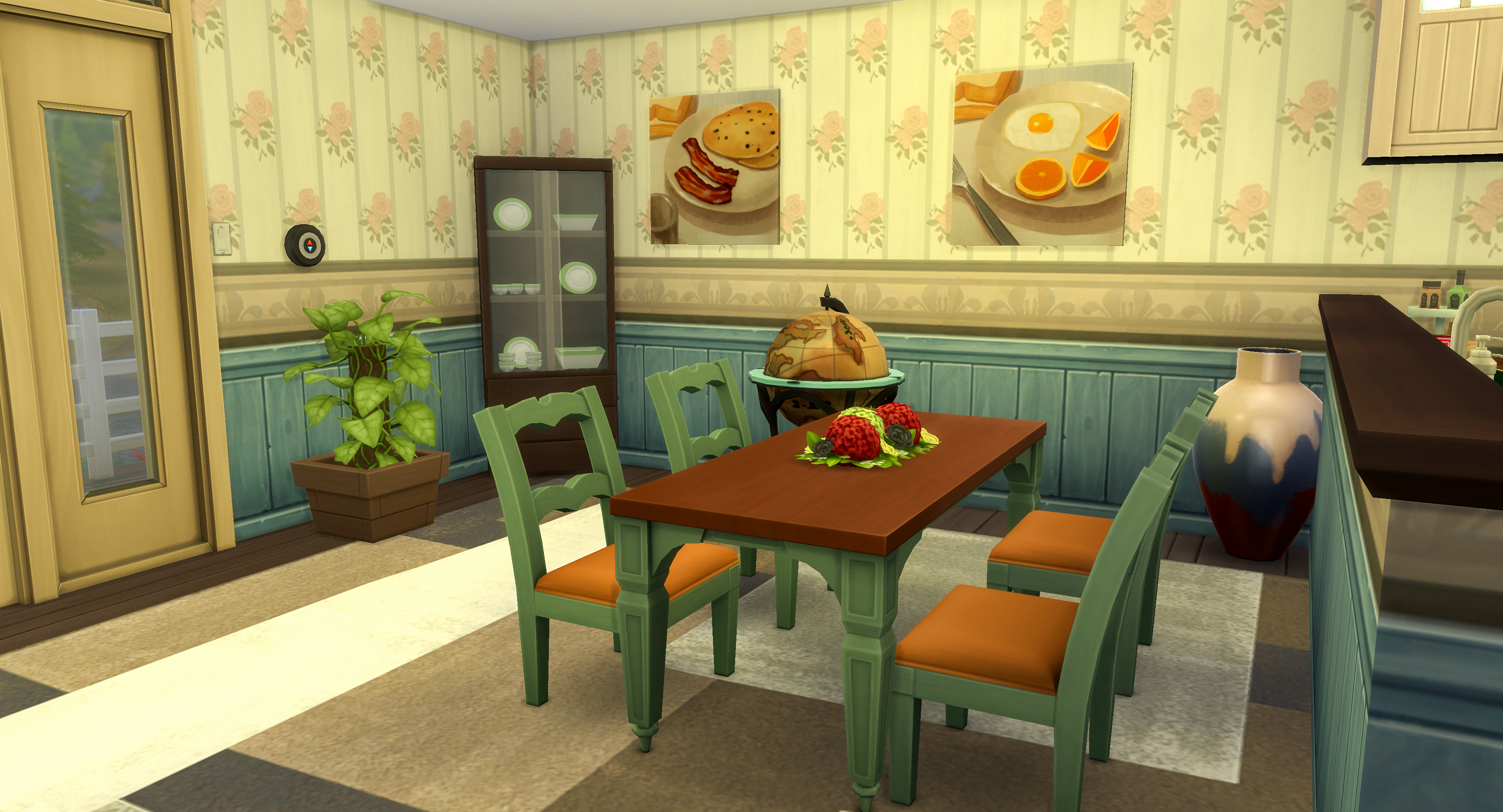 Two full bathrooms support family gameplay and visiting Sims with ease — one en-suite and one shared family bathroom.