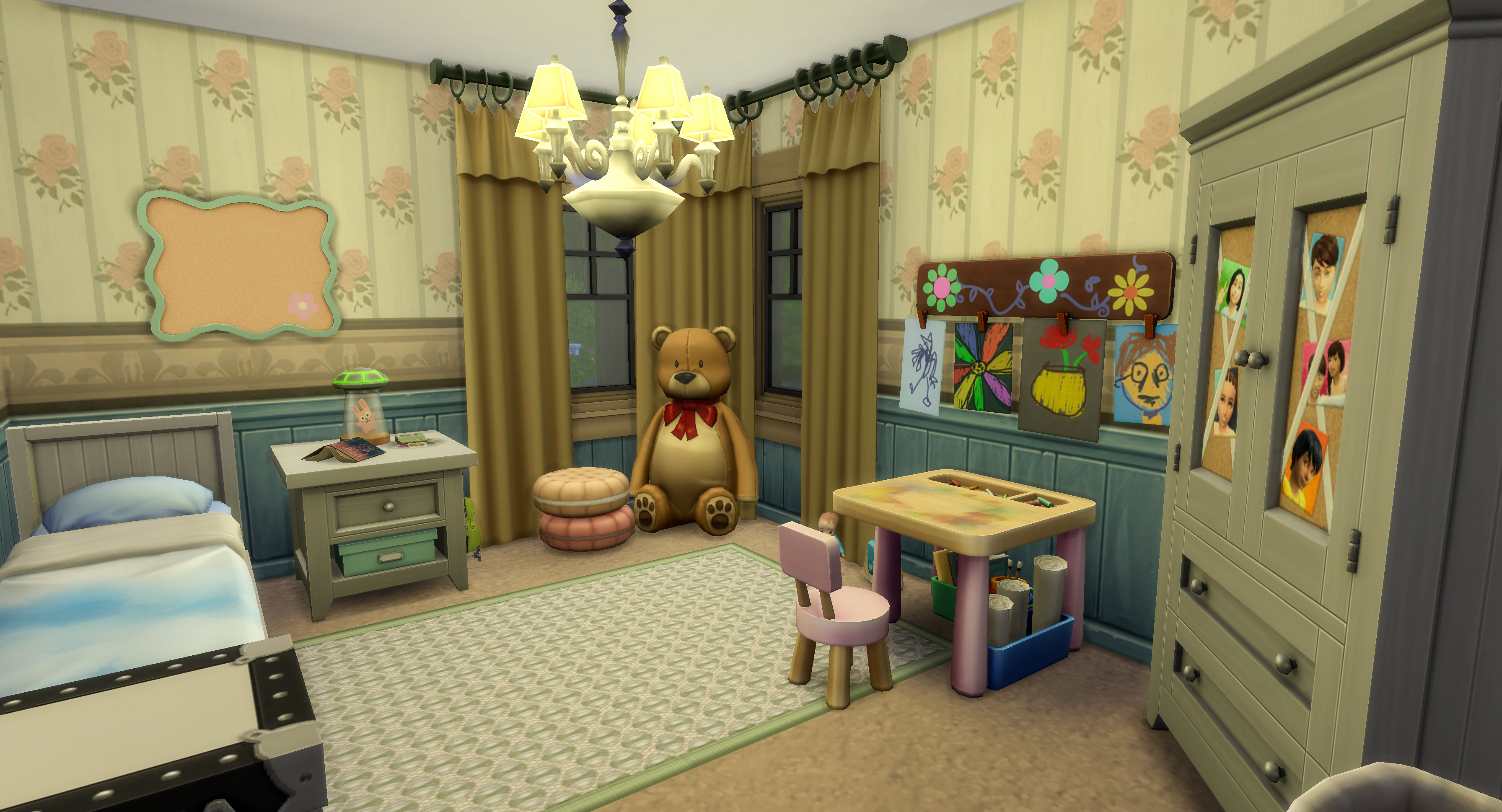 • Bedroom Three is ideal as a child’s bedroom, hobby room, or creative space — ready to evolve with your Sim’s story.