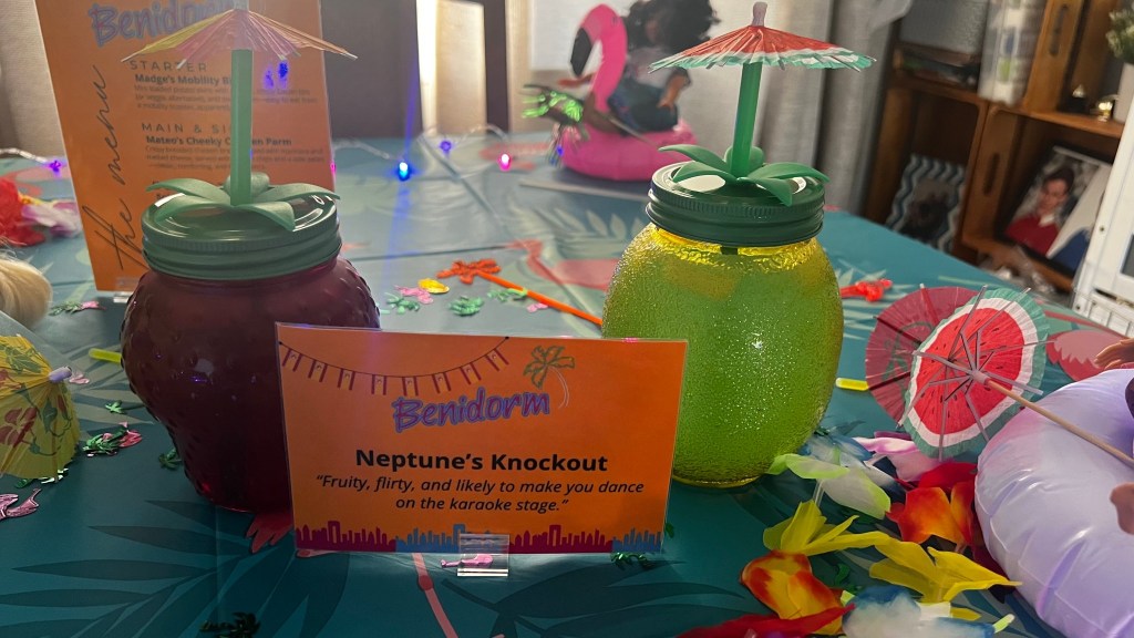 Just fairy lights, cocktail umbrellas, and a living room turned Solana Resort.