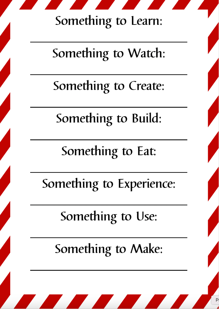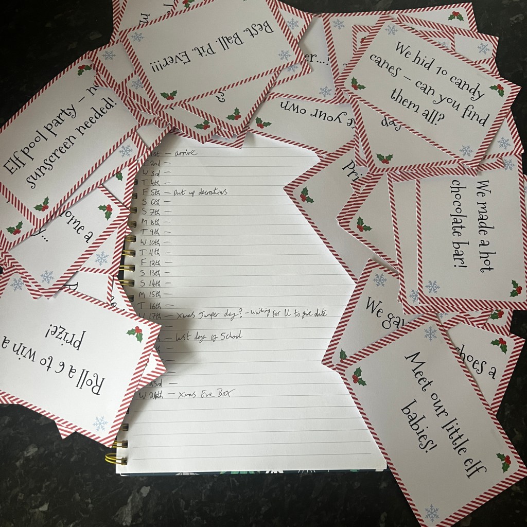 Pinterest is once again my best friend here. This year, I’ve created a little stash of printable elf signs and prompts so I’m not scrambling every single night.