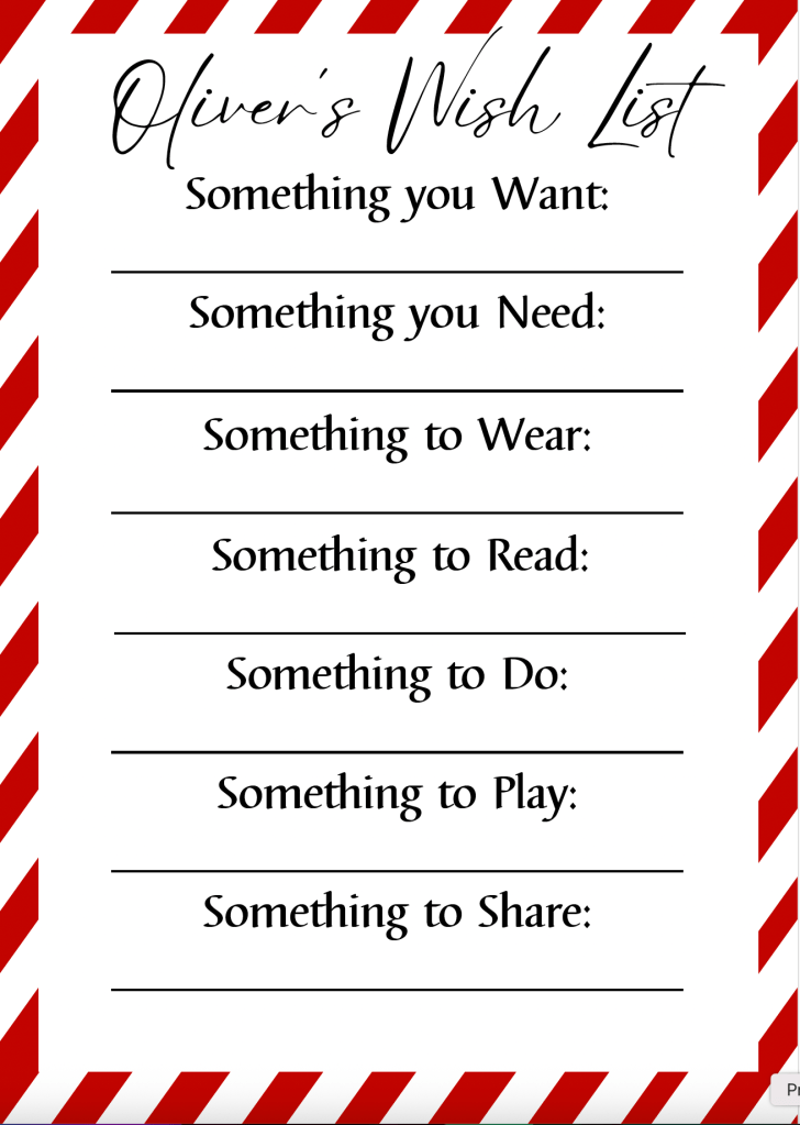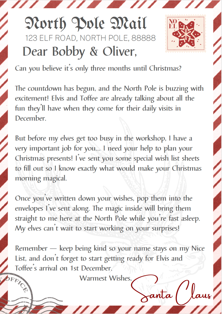 To make it feel extra special, I created a letter from Santa asking them to fill in their lists early — you know, to help keep things running smoothly at the North Pole 😉
