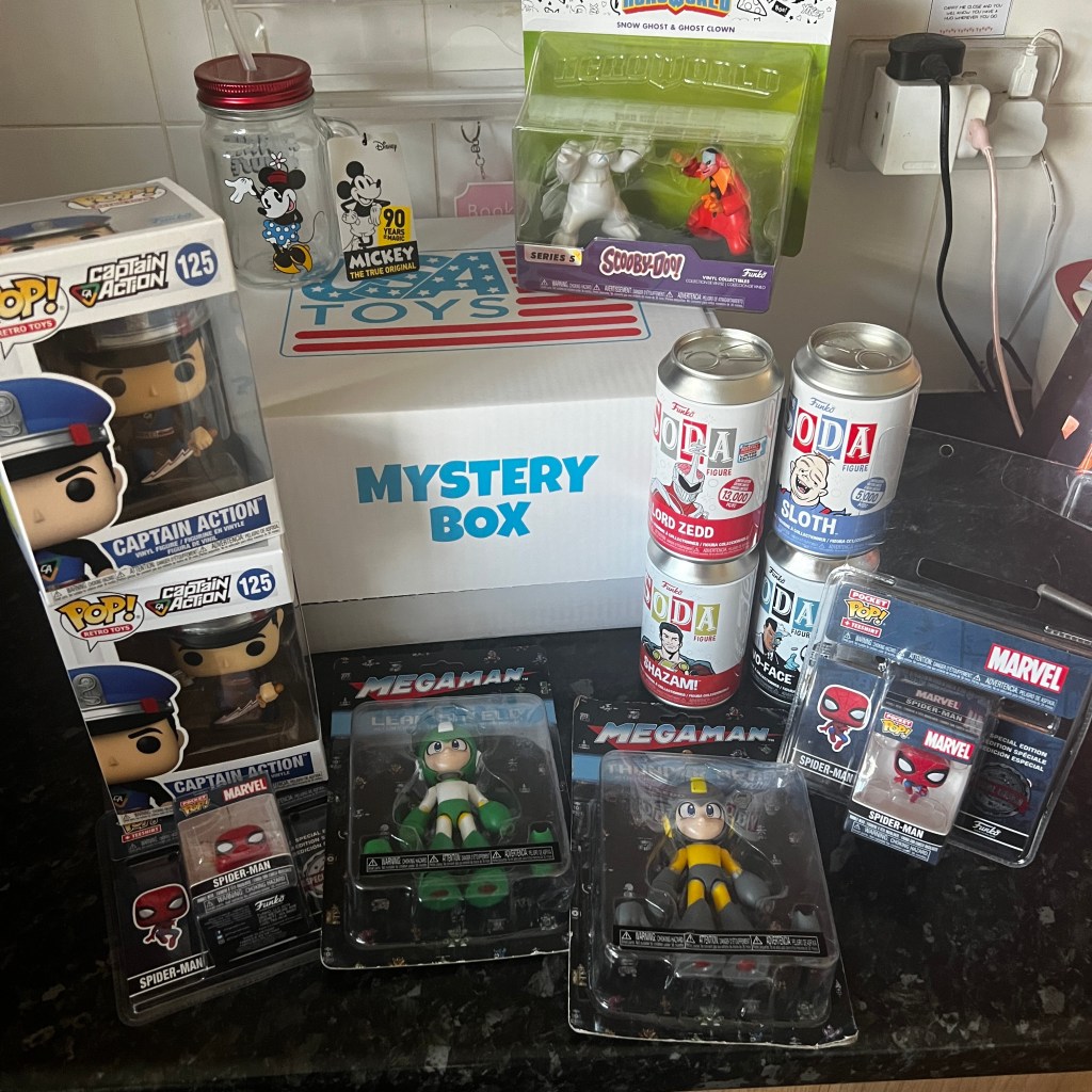 Goodbye Mega Man, two mini Spider-Men, and a Scooby-Doo.