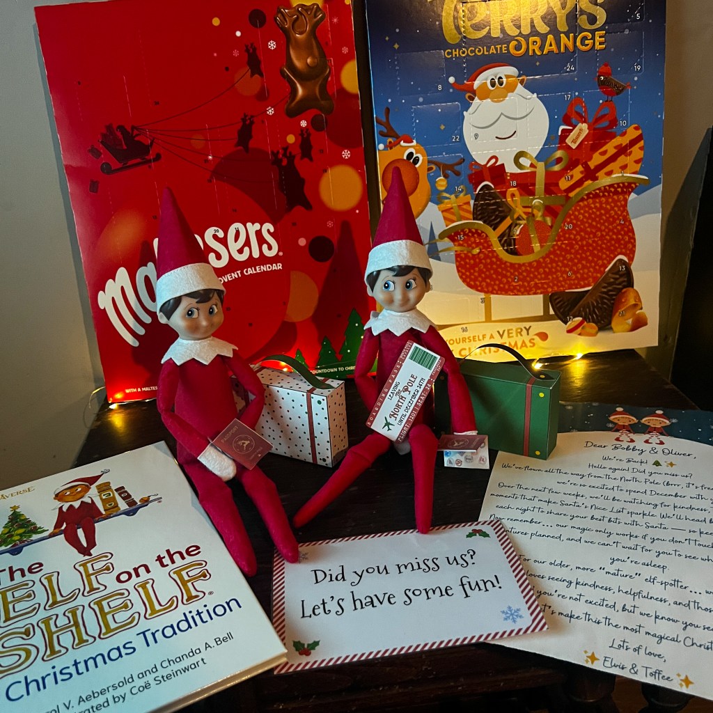 Waiting beside them were their favourite holiday essentials — the Elf on the Shelf storybook, their yearly letter, and the advent calendars that mark the start of the Christmas countdown.