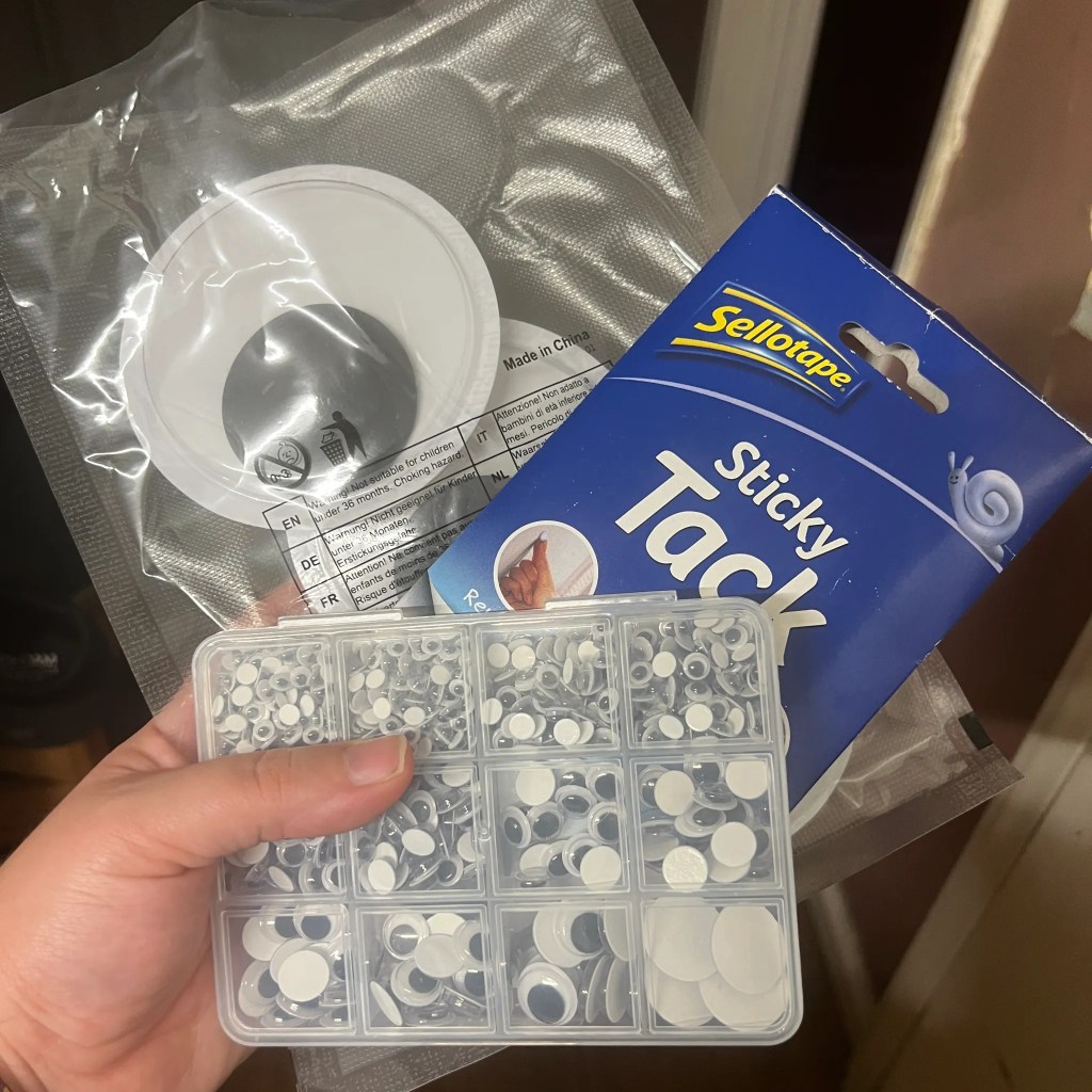 I grabbed a box of googly eyes — including some giant ones — and used tiny bits of Blu Tack to stick them onto random objects around the kitchen and living room.