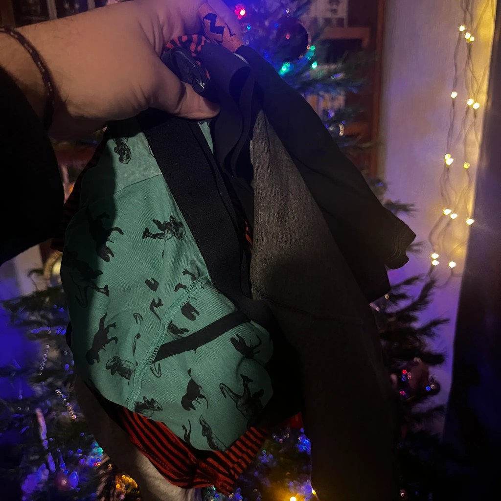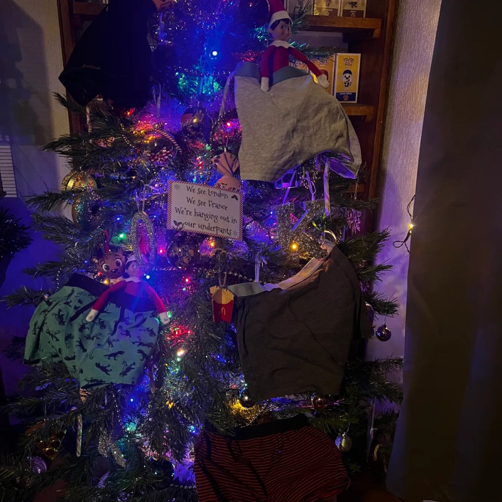 Every branch of the tree had suddenly become part of a very questionable North Pole fashion display ā pants hanging like festive bunting, and the elves themselves perched proudly inside a pair each like tiny models debuting the latest North Pole Winter Collection.