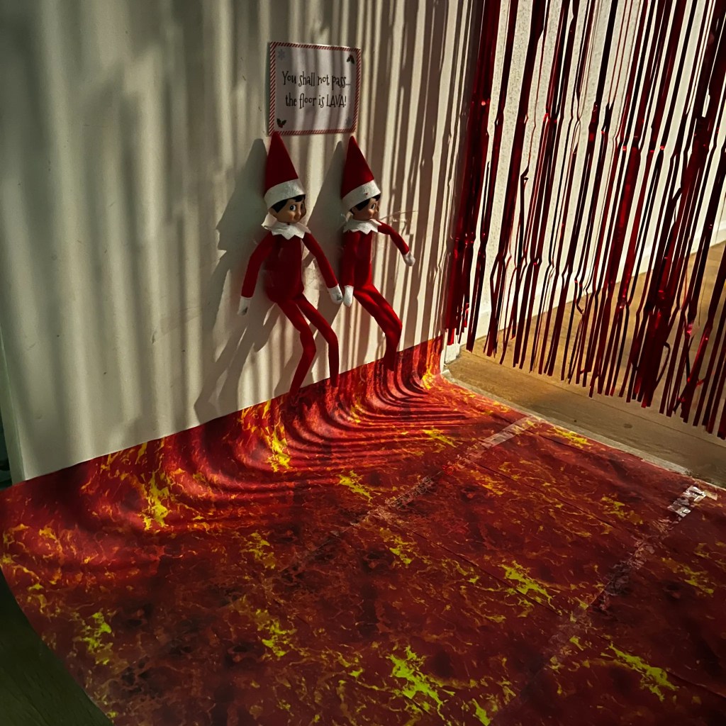It’s the kind of setup that takes five minutes to make but gets the biggest reaction. The boys spotted it straight away and instantly started laughing at how seriously the elves took the “floor is lava” rule.