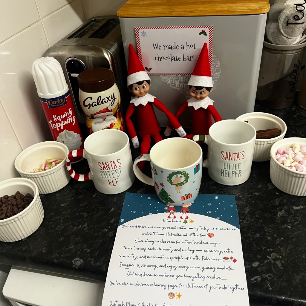 With mugs waiting, toppings everywhere, and a morning full of chocolatey goodness ahead, the elves made sure everyone — boys and niece alike — could start the day with a warm cup of festive cheer. ☕✨
