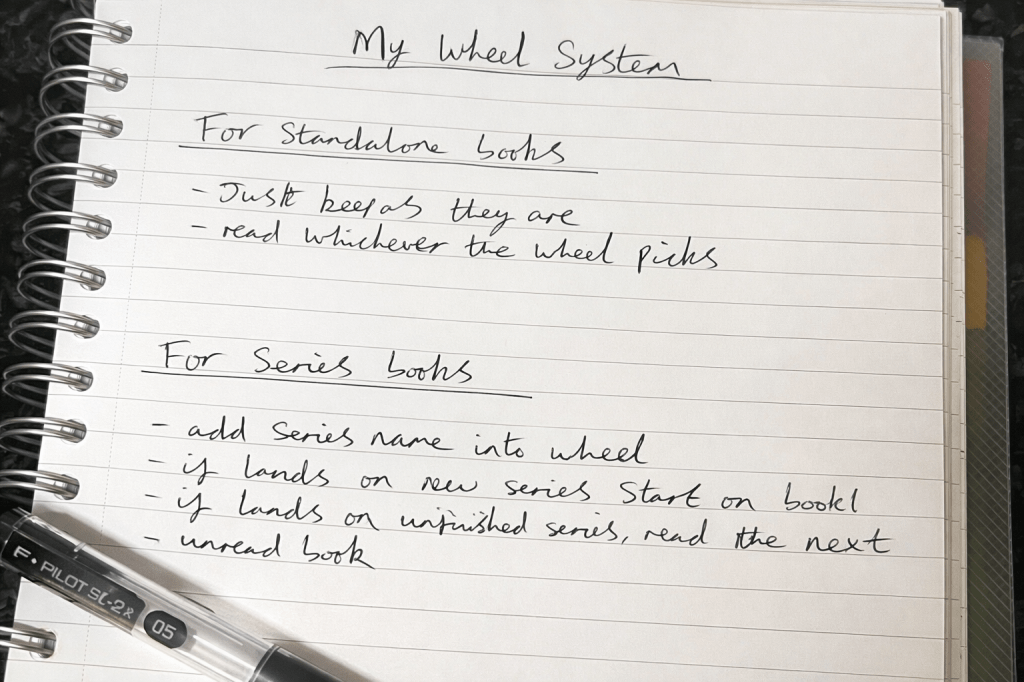 I use Wheel of Names — yes, the website normally reserved for classrooms and giveaways — and I turned it into my personal reading overlord.