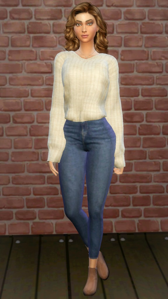 Autumn’s everyday style is relaxed and comfortable — perfect for settling into suburban life in Willow Creek. Soft knitwear, denim, and neutral tones keep her look timeless and easy to wear.