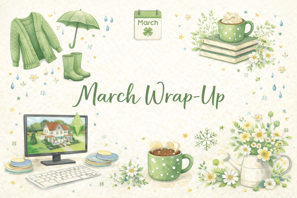 March felt like a whirlwind of chaos, cozy moments, and little wins that meant everything. From getting lost in fantasy worlds and revisiting favourite romances, to Sims builds, spontaneous trips, and a few real-life milestones — this month was full in the best kind of way (even with a cold thrown in for good measure).