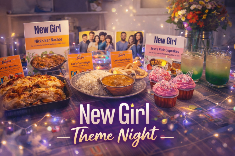 A New Girl–inspired theme night filled with bar nachos, Cece-worthy curry, pink cupcakes, and a suspicious Winston mocktail. We turned our kitchen counter into Apartment 4D for a cosy, chaotic dinner date that proved theme nights don’t need perfection — just commitment.