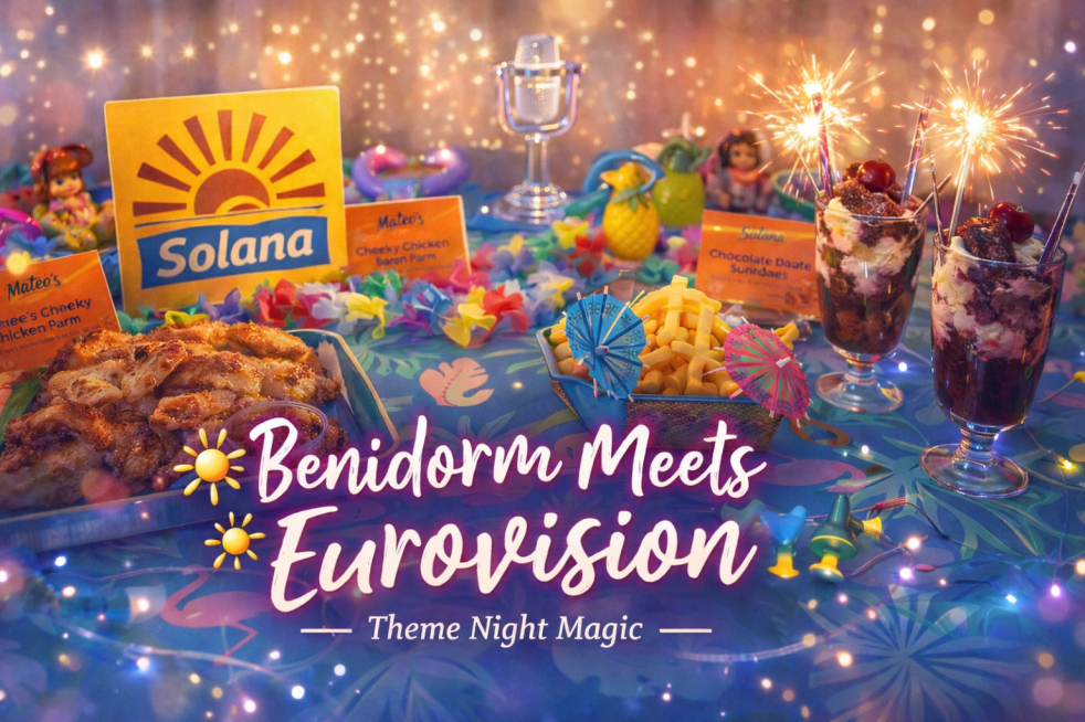 Our very first themed dinner night turned our living room into the Solana Resort. While the kids enjoyed the real Benidorm on holiday, we created our own all-inclusive chaos at home — complete with cocktail umbrellas, chocolate sundaes, and a Eurovision afterparty.
